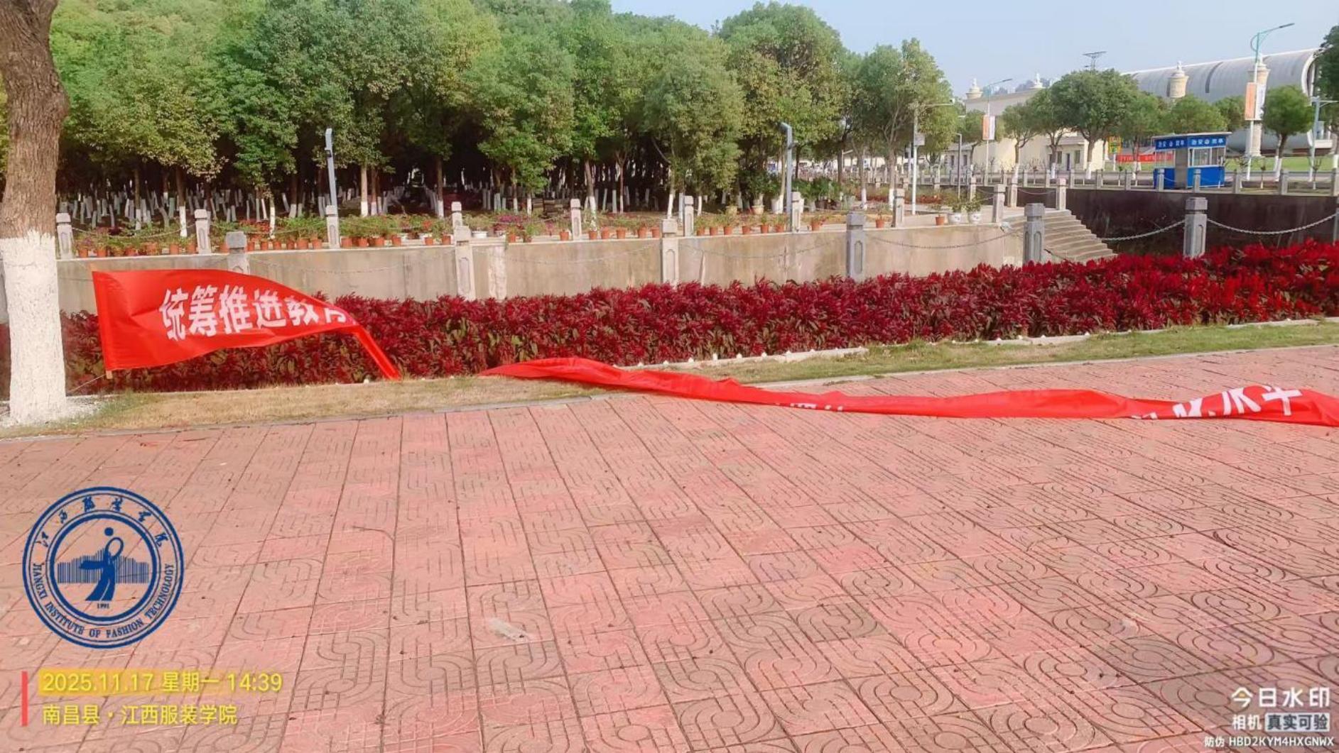 11月17日,天气骤变,风力达到7级以上。一夜过来,校园内不少宣传条幅出现掉落、破损现象,影响了校园环境,有些树木、指示牌被风吹松动,可能有倒伏的危险,威胁到师生的安全。