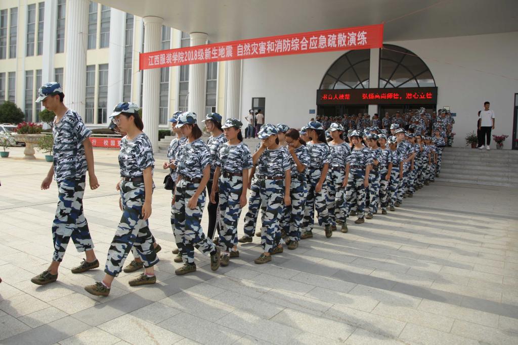 服装报讯(记者 杨双洲 摄影 金微微 刘德锦 胡国威)9月11日下午,我校在主教楼和清澜区篮球场、老驾校等地进行了2018级新生地震、自然灾害和消防综合应急疏散演练和消防灭火演练。承训教官领导刘营长、校学工处处长张建荣、保卫处处长彭建军以及各学院(副)书记、军训教官、学工办主任、班主任、辅导员和2018级全体新生参加了演练。